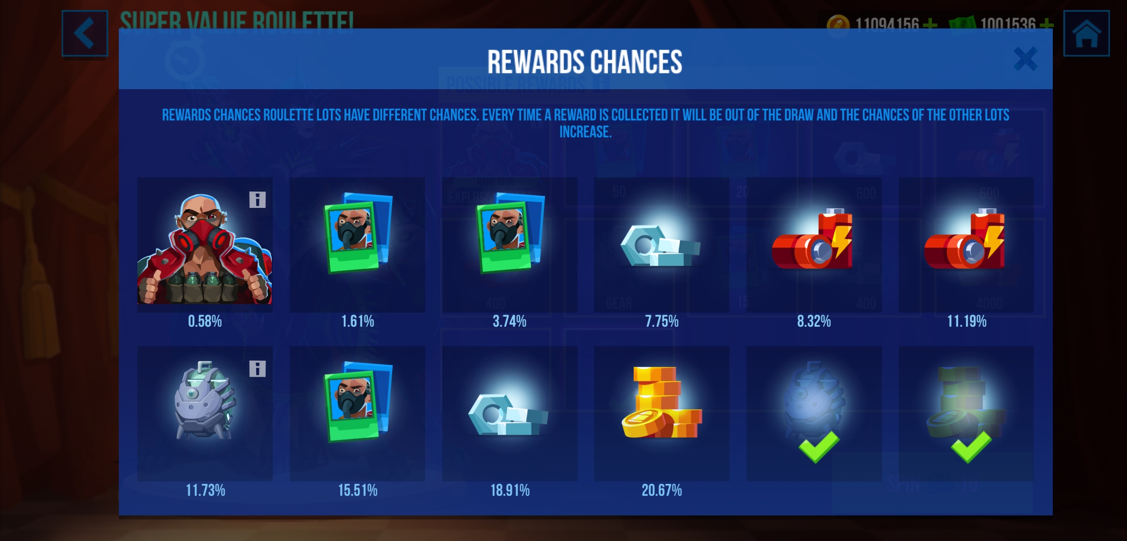 We've reworked the main screen, the drop chance screen (the "i" button), and redesigned the spin animation.