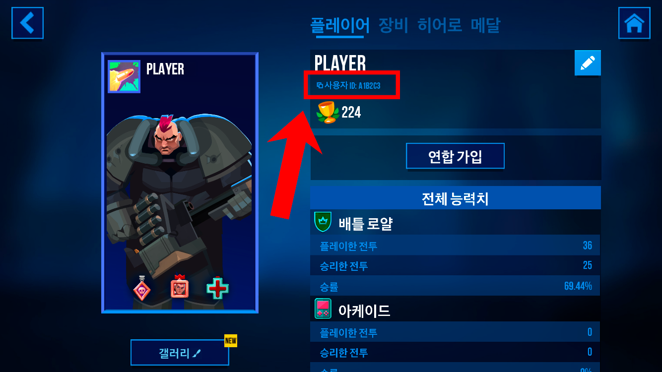 2단계. 플레이어 프로필 화면에서 “프로필 ID” 항목을 찾으세요. 닉네임 바로 아래에 있습니다.
