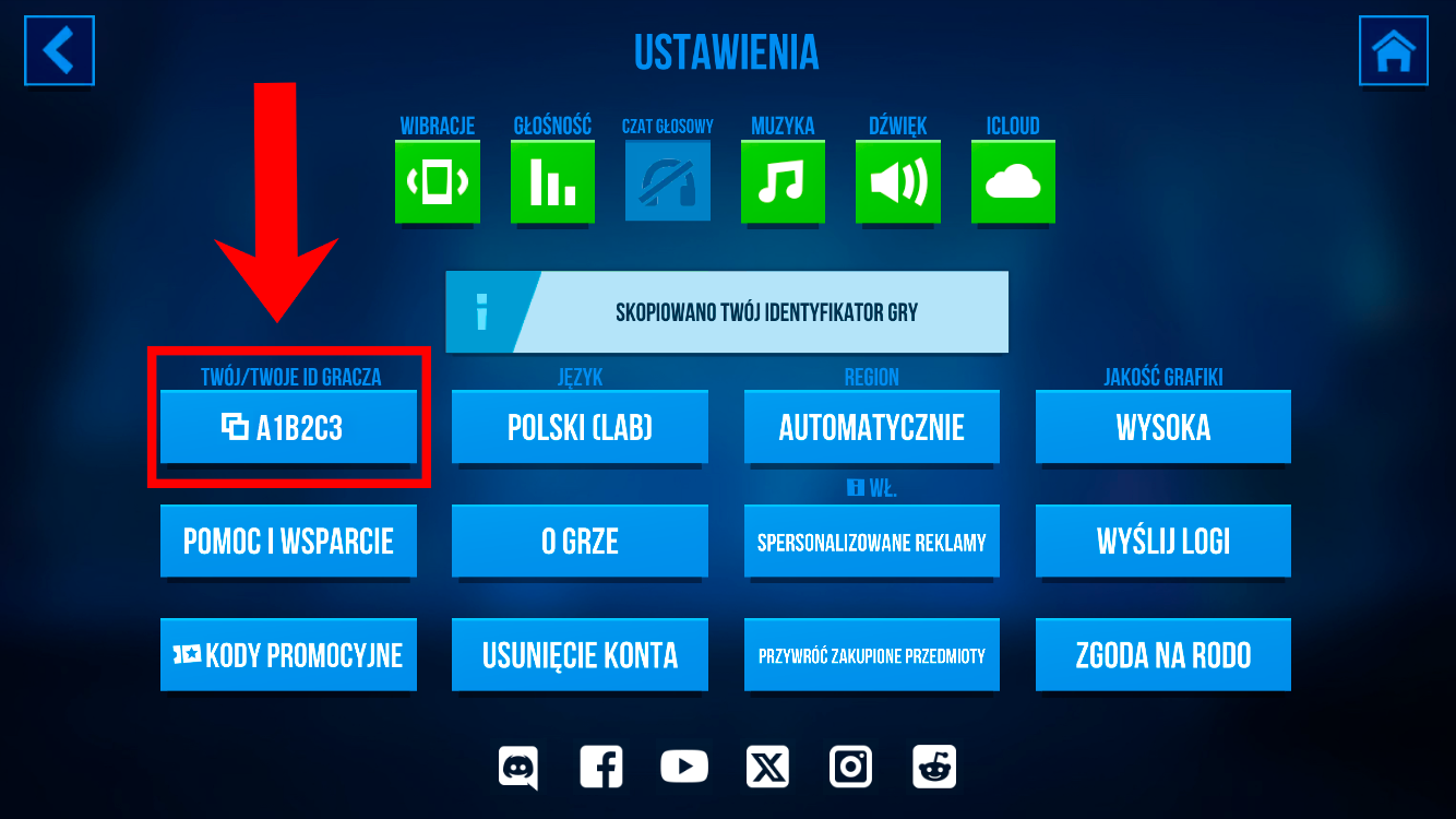 Krok 2. W menu Ustawień znajdź przycisk „TWÓJ ID PROFILU” i stuknij go, aby skopiować.