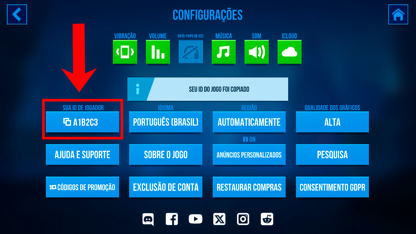 Etapa 2. No menu de Configurações, encontre o botão “SEU ID DO PERFIL” e toque nele para copiar.