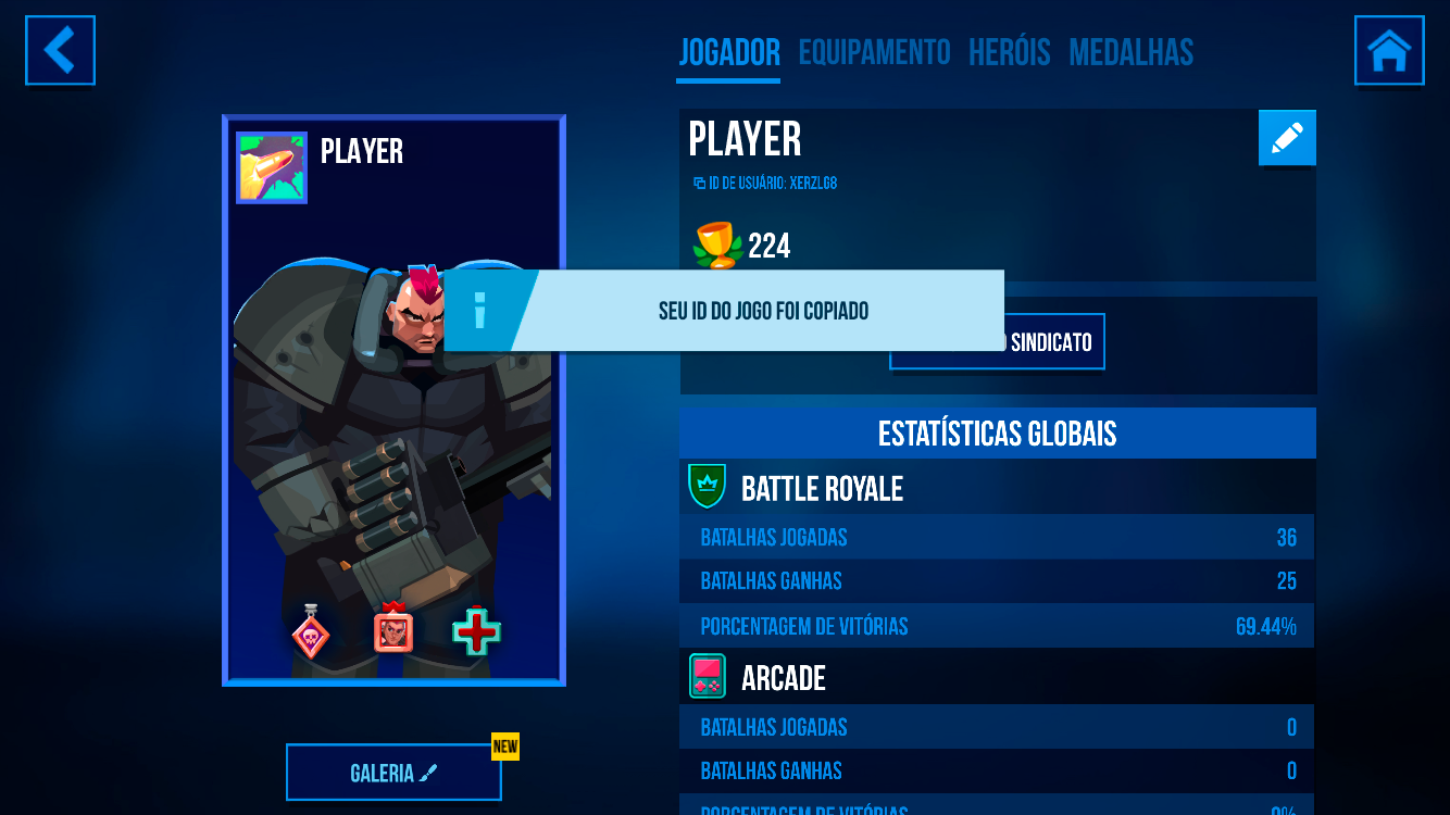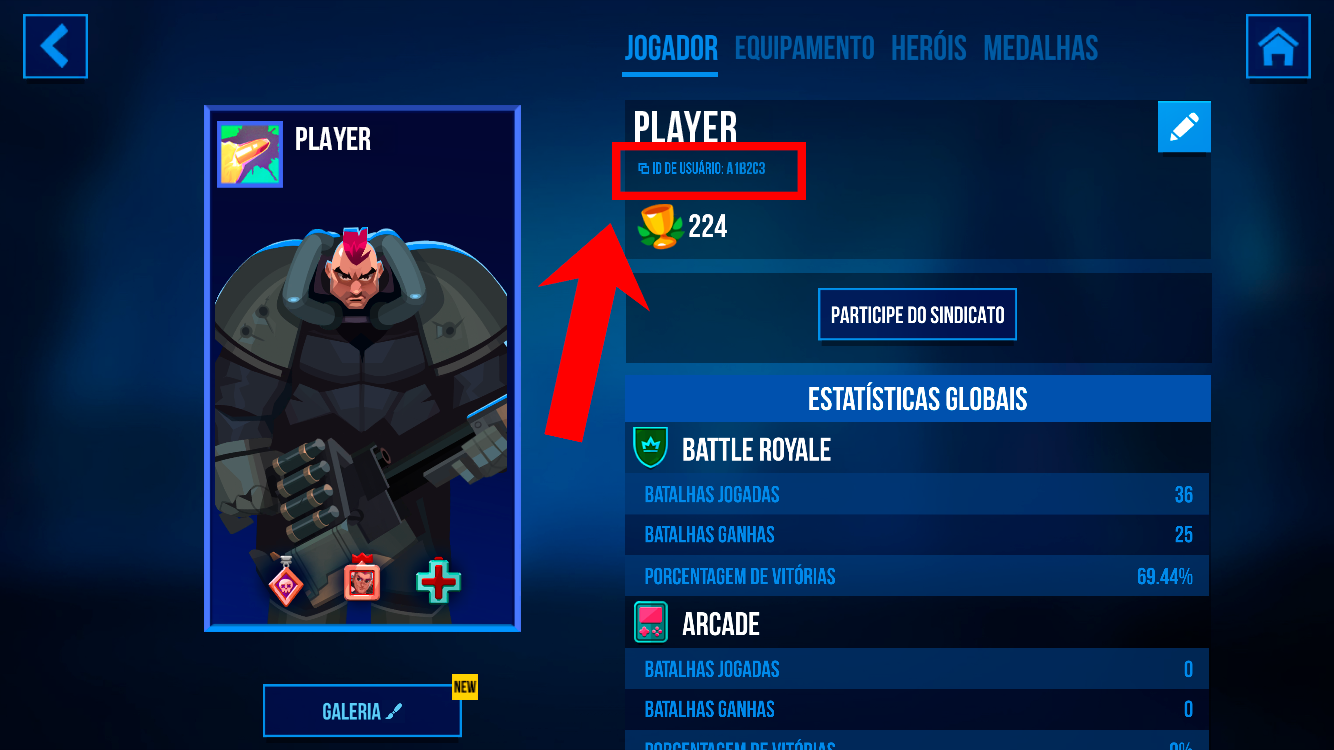 Etapa 2. Na tela do perfil do jogador, encontre o campo “ID do perfil” — ele fica logo abaixo do seu apelido.