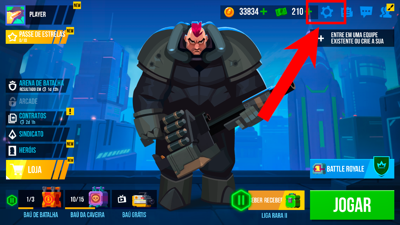Etapa 1. Na tela principal, toque no ícone de engrenagem (⚙️) no canto superior direito.
