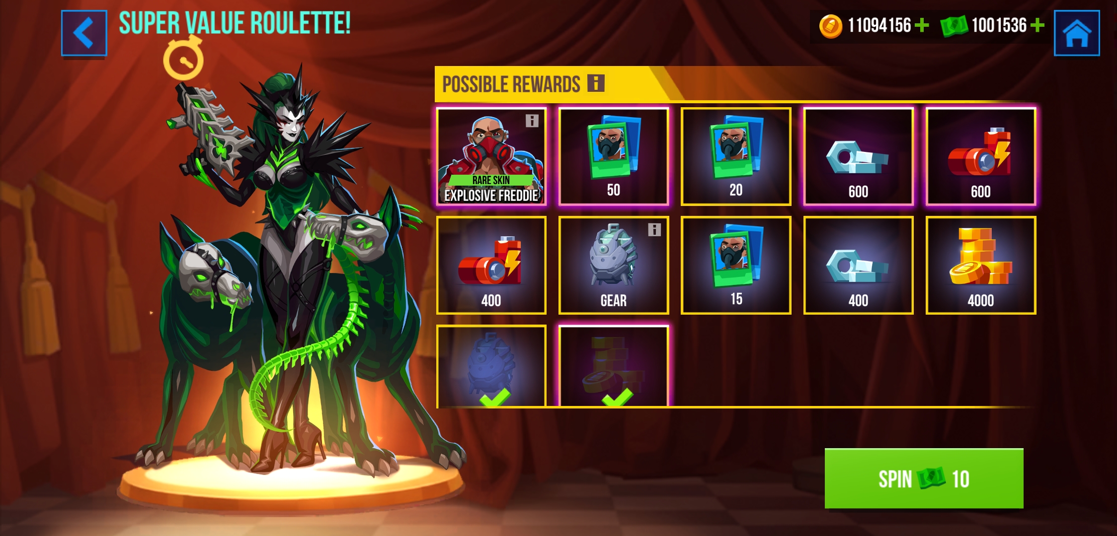 Здесь мы переработали основной экран, экран просмотра шансов выпадения наград (кнопка "i"), а также переделали анимацию кручения рулетки.